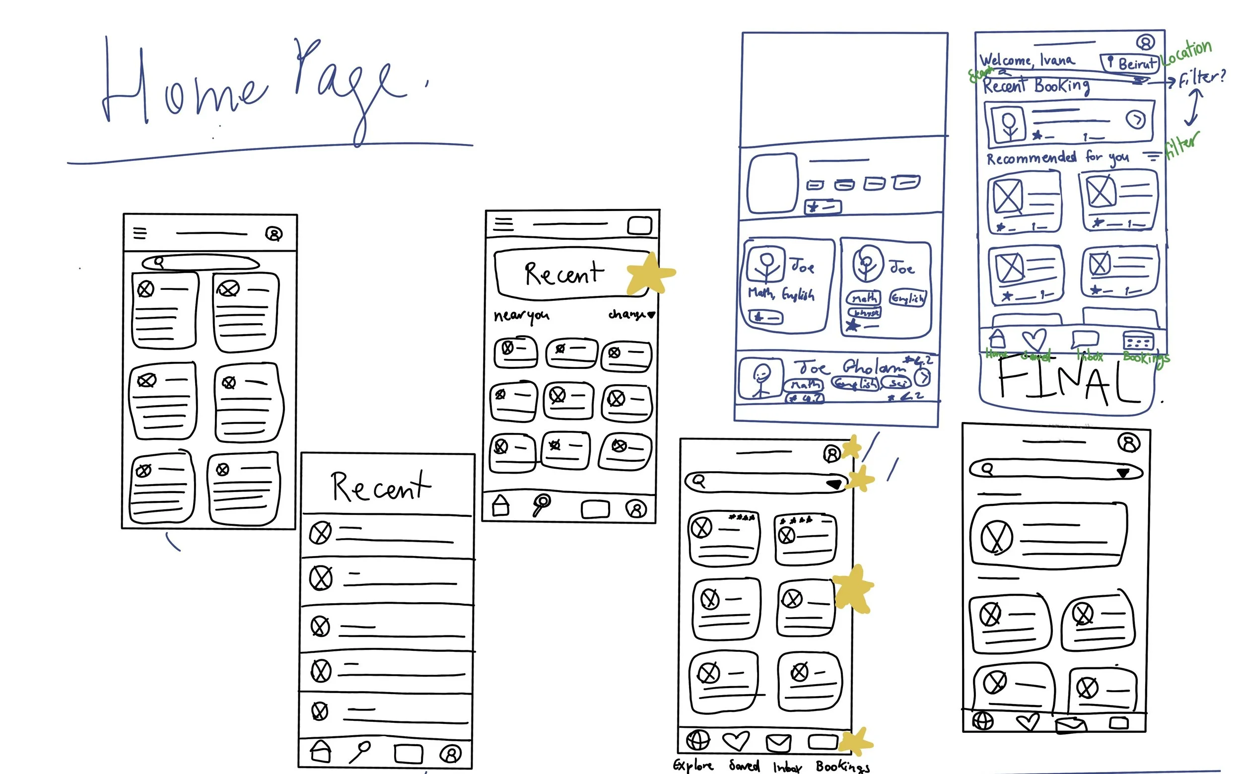 I used stars to highlight the designs that would make it to the final draft