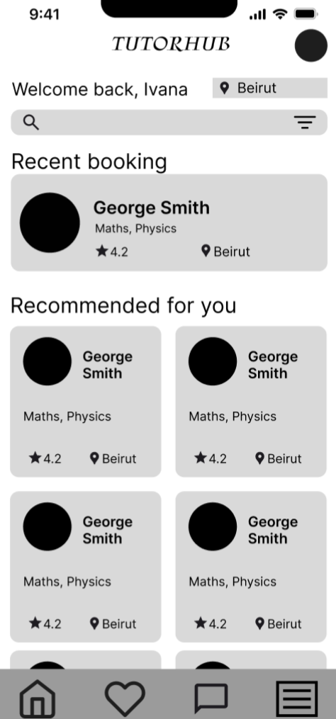 I was the sole designer on TutorNest, and led the entire design process: